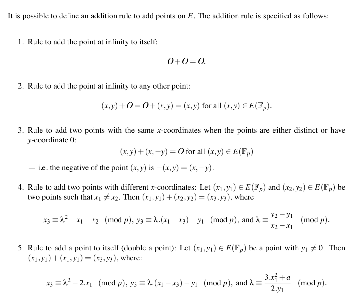 An elliptic curve cryptosystem can be defined by picking a prime number as a maximum, a curve equation and a public point on the curve. Now, let's discuss another important type of cryptography used in cryptocurrency applications known as elliptic curve digital signature . Elliptic curve digital signature algorithm or ecdsa is a cryptographic algorithm used by bitcoin to ensure that funds can only be spent by . We learned how finite fields work and what an elliptic curve is. For example, if a transaction spending bitcoin appears on the bitcoin blockchain, ecc is used to verify that the owner of the bitcoins authorized the . The public key is a elliptic curve point on the secp256k1 curve. Secp256k1 is the name of the elliptic curve used by bitcoin to implement its public key cryptography. This project is a fork of elliptic but with all curves unrelated to bitcoin removed . Elliptic curves over real numbers . All points on this curve are valid bitcoin public .